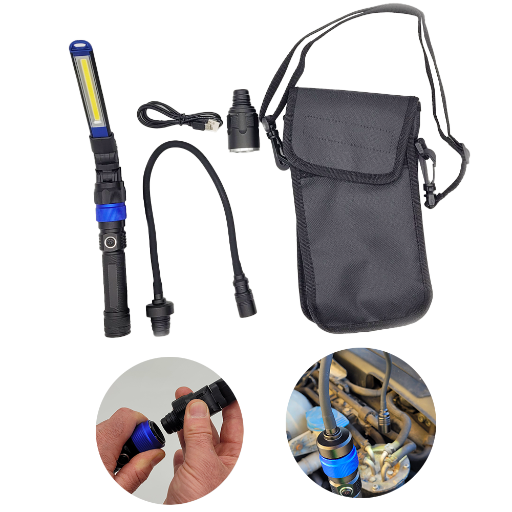 DOMAINES D'UTILISATION Pour tous les services de maintenance. Équipée avec la dernière technologie 3W LED COB et 1 W lampe torche. Permet de travailler les mains libres en éclairant les compartiments moteur, les habitacles et tous lieux sombres.